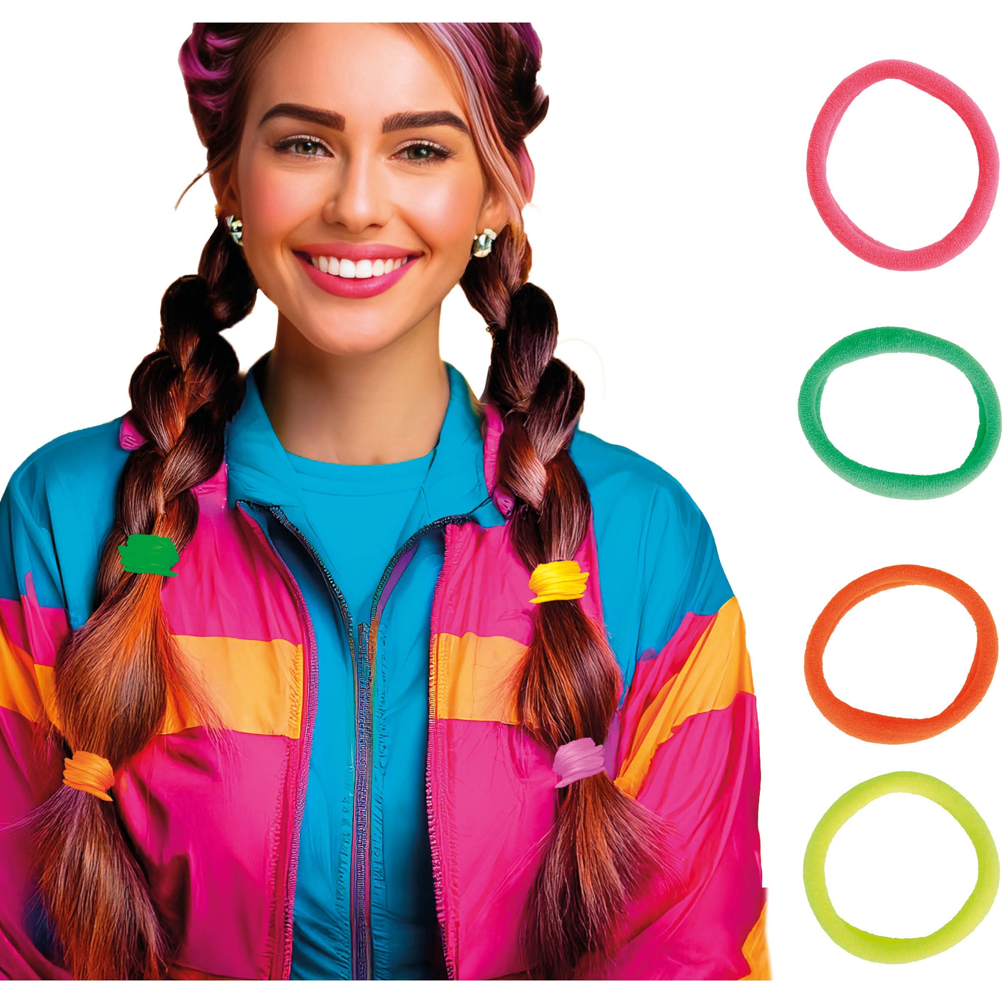 - Set mit 5 Neon-Haargummis in leuchtenden Farben für einen Retro-90er-Look.