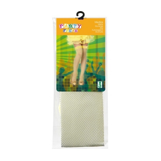 Die aus Polyester gefertigte Strumpfhose ist mit einem zarten Netzmuster versehen, lässt sich leicht an- und ausziehen und ist sehr angenehm zu tragen.