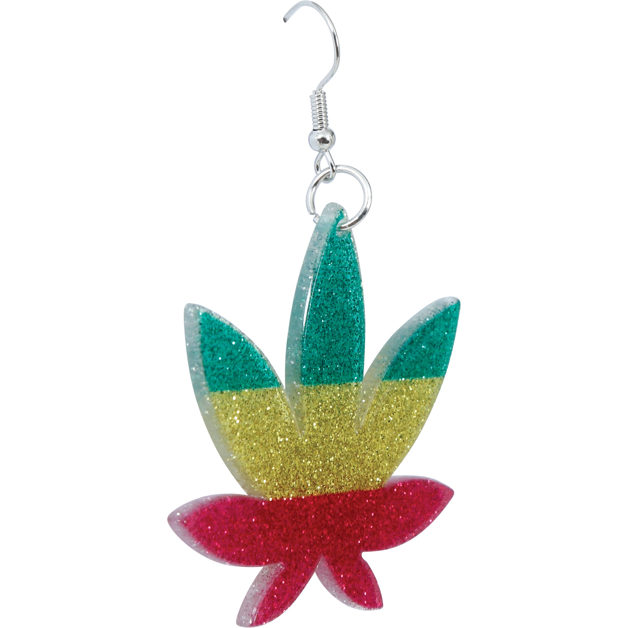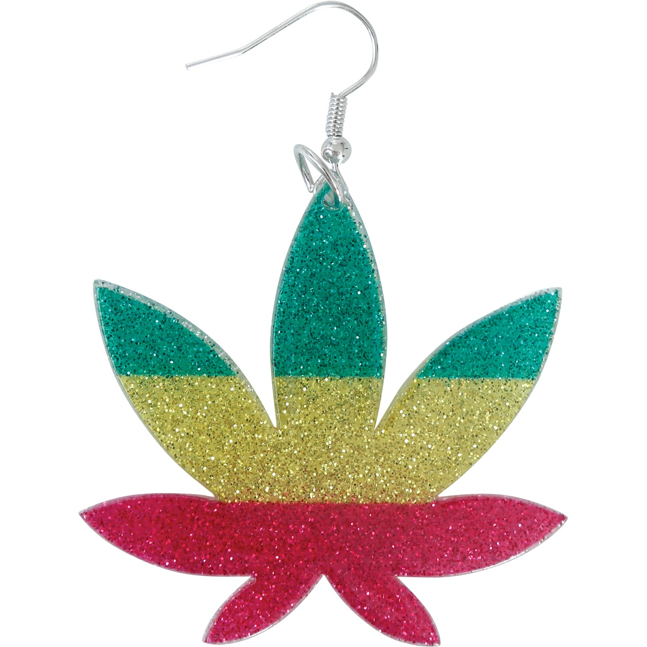 Ohrringe mit Marihuana-Blatt-Design in den klassischen jamaikanischen Farben Grün, Gelb und Rot. Das glitzernde Finish verleiht einen auffälligen, lässigen Touch. Aus Metall und PVC gefertigt, verbinden sie Robustheit mit Leichtigkeit. Die Metallhaken sind leicht anzulegen und sorgen für angenehmen Tragekomfort. Das perfekte Accessoire, um Ihrem Look einen Reggae- oder alternativen Akzent zu verleihen.