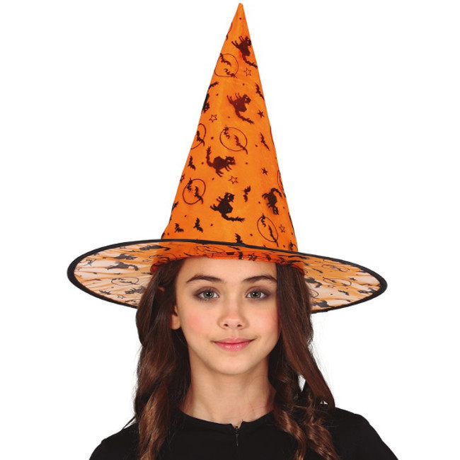 Es besteht aus einem Stoffhut mit der typischen Form eines Kegels. Er ist orangefarben und mit charakteristischen Zeichnungen versehen.