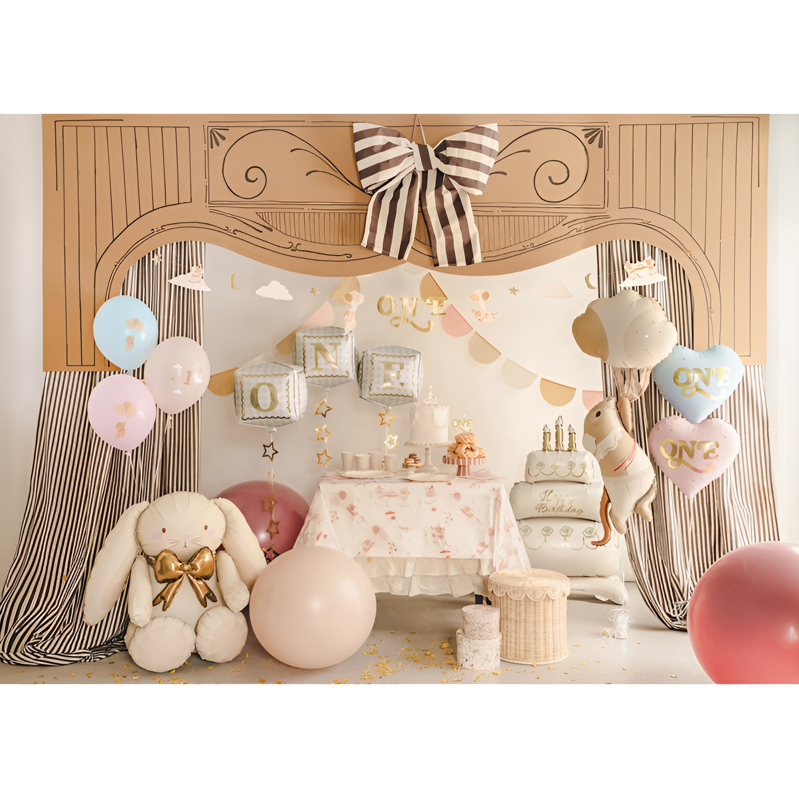 - Kinder-Motiv mit kleinen Mäusen in sanften Farbtönen für eine liebevolle Atmosphäre.