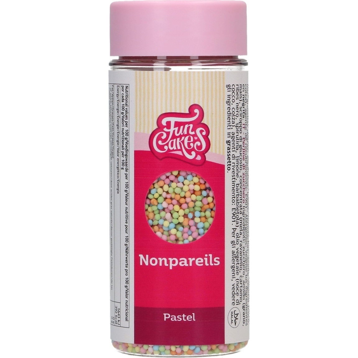 Erinnern Sie sich an die bunten Kügelchen, die früher Ihr Lieblingseis geschmückt haben? FunCakes Nonpareils Pastel bringen genau diese fröhliche Note in Ihre hausgemachten Desserts. Sie eignen sich hervorragend, um Cupcakes, Torten, Donuts, Cake Pops und Kekse farbenfroh und mit zusätzlicher Textur zu veredeln. Der praktische Dosierbehälter ermöglicht ein schnelles und präzises Dekorieren.