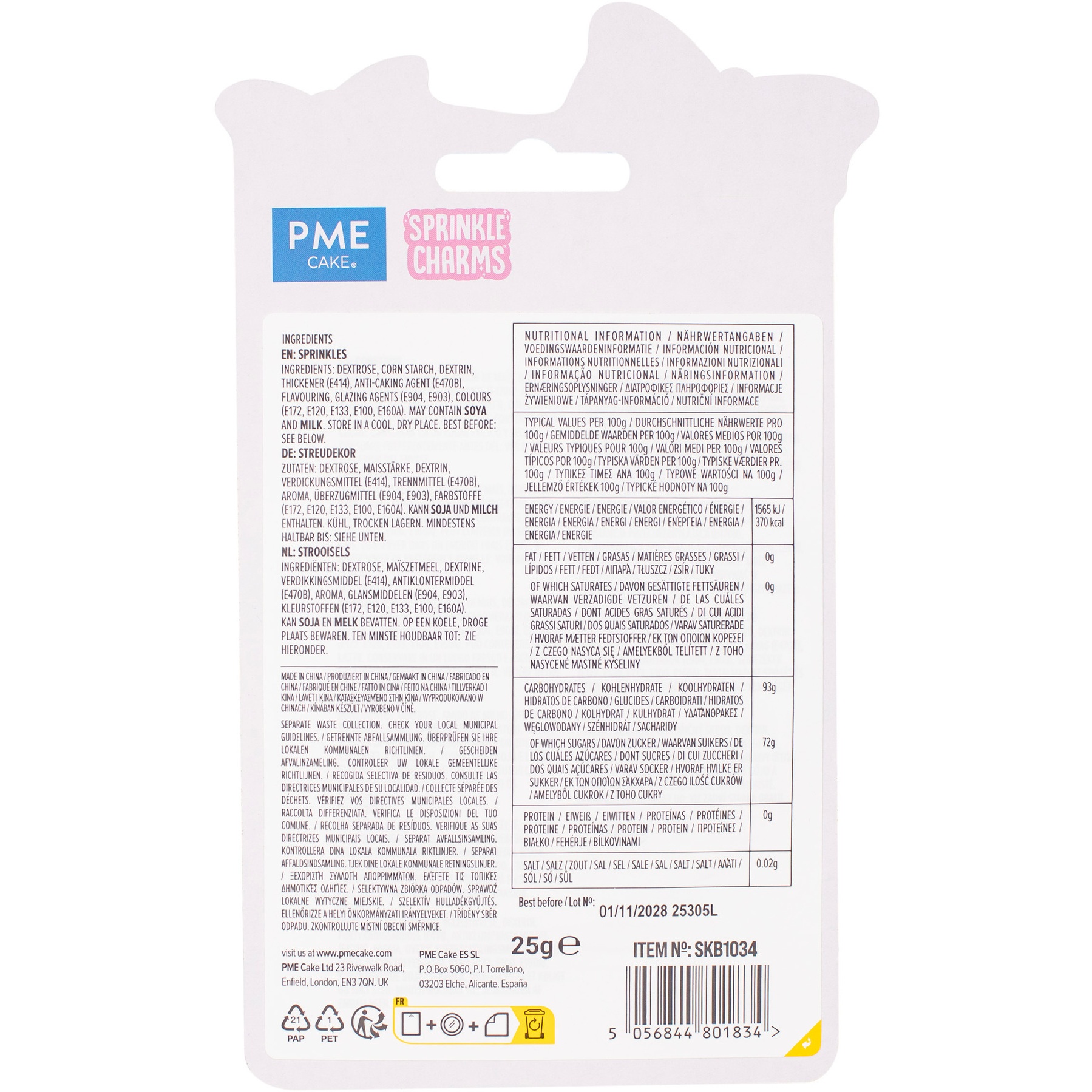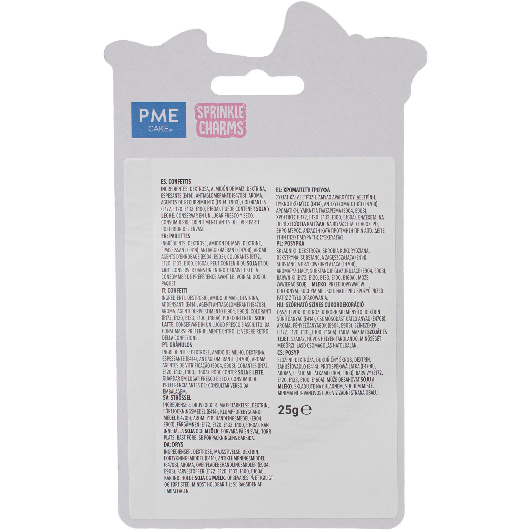 Zutaten: Dextrose, Maisstärke, Dextrin, Verdickungsmittel (E414), Rieselhilfe (E470B), Aroma, Überzugsstoffe (E904, E903), Farbstoffe (E172, E120, E133, E100, E160A).