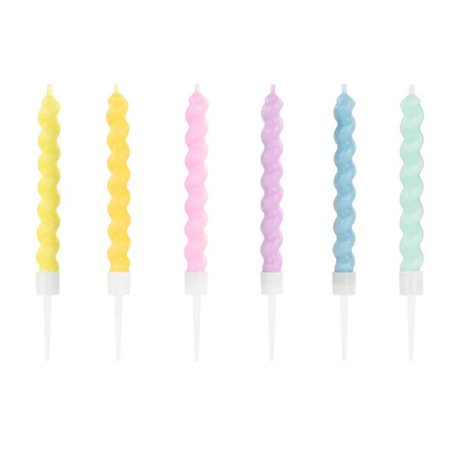 Pastellfarbene Spiralkerzen 8,5 cm - PartyDeco - 6 Stück