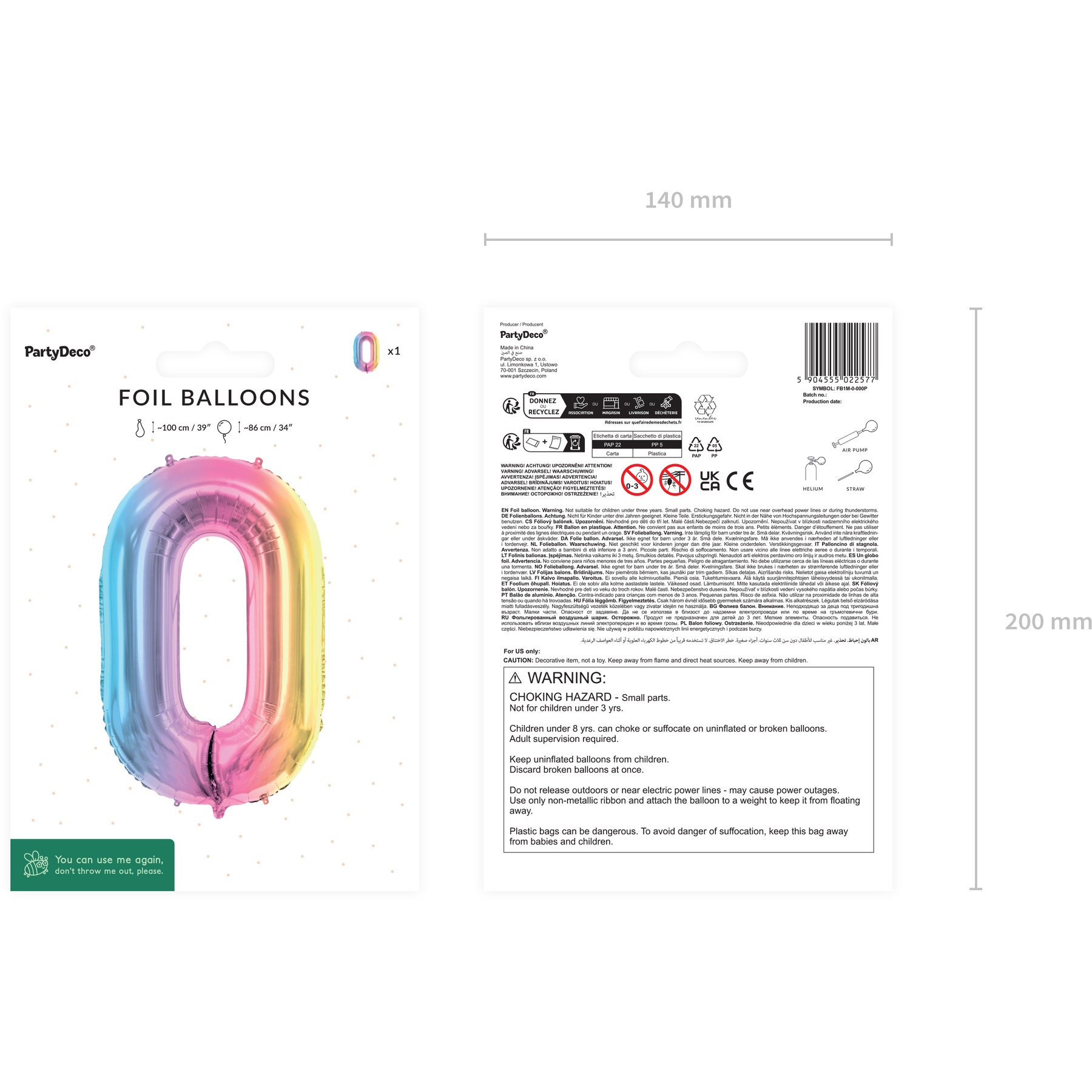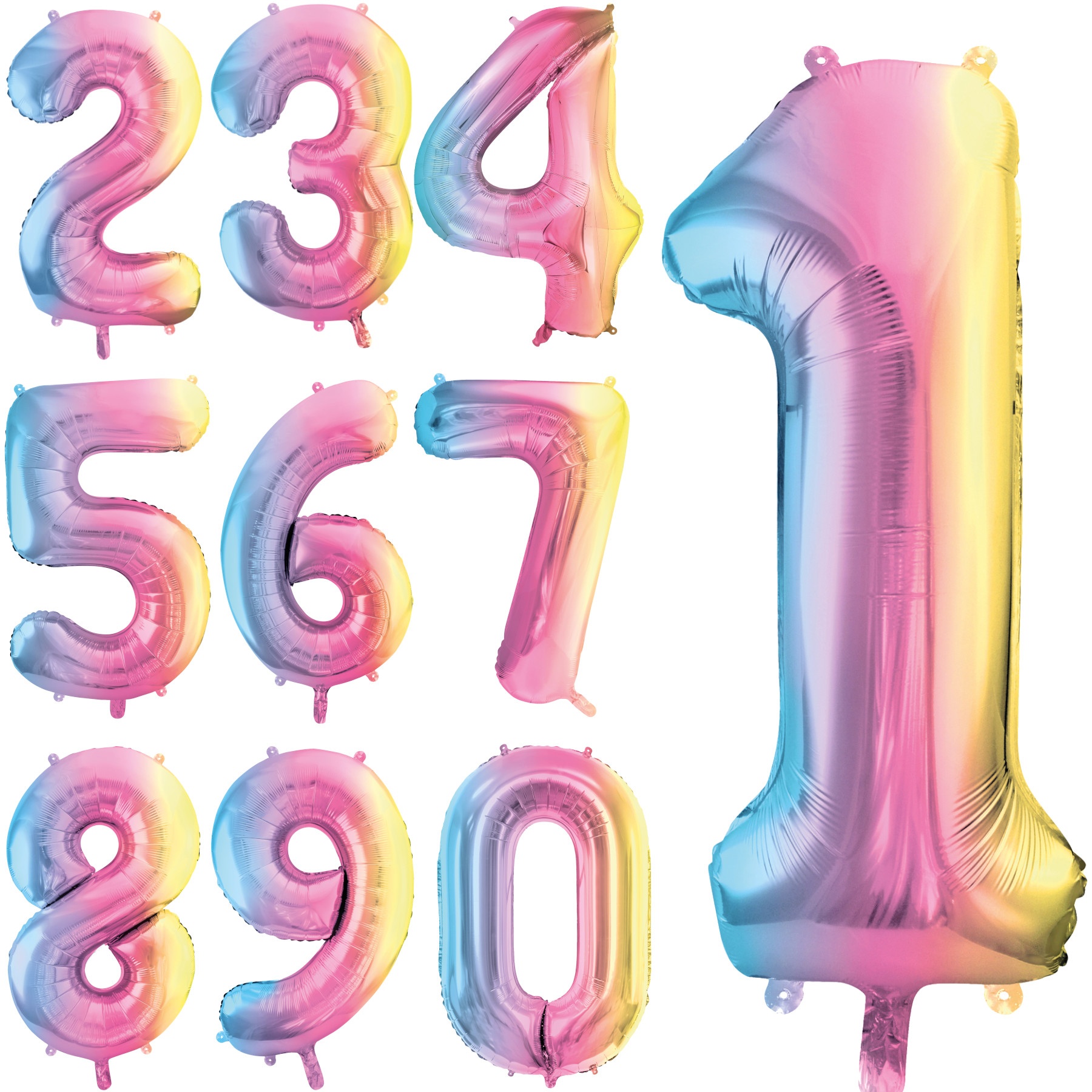 Pastellfarbener Regenbogen-Nummernballon 86 cm - PartyDeco - 1 Stück