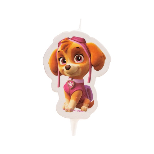 Eine spektakuläre Kerze, mit der du deinen Geburtstag feiern kannst. Sie zeigt den berühmtesten Hund der Paw Patrol, Skye.