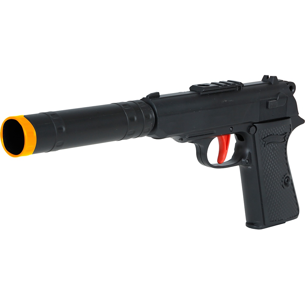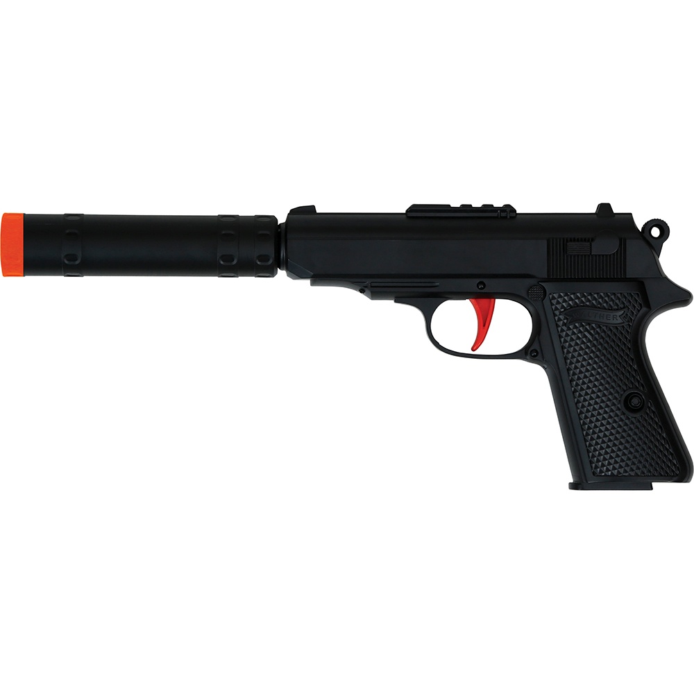 Spielzeug-Replik mit Schalldämpfer - ideal, um Ihren Agenten-Look zu vervollständigen oder für die passende Atmosphäre bei Themenpartys. Aus PVC gefertigt, verbindet sie ein realistisches Aussehen mit geringem Gewicht, sodass Sie sie bequem in der Hand tragen können. Sie ist ca. 29 cm lang, wodurch sie sich leicht greifen und bei Photocalls, Karneval und Veranstaltungen handhaben lässt.