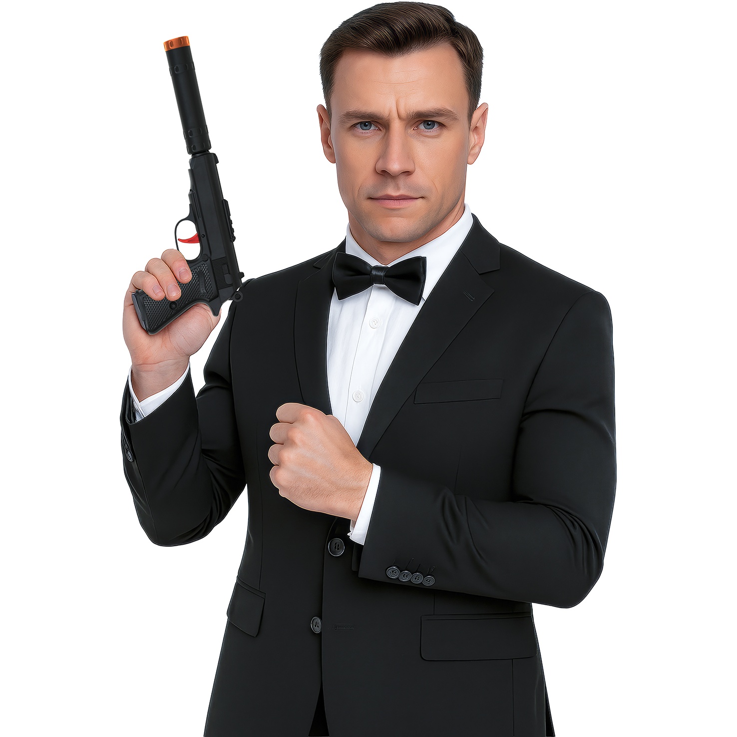 Nur als Accessoire für Kostüme und Dekoration gedacht; keine echte Waffe. Perfekt, um sie mit Ihrem formellen Outfit oder Verkleidungen als Spion, Bösewicht oder Filmcharakter zu kombinieren.