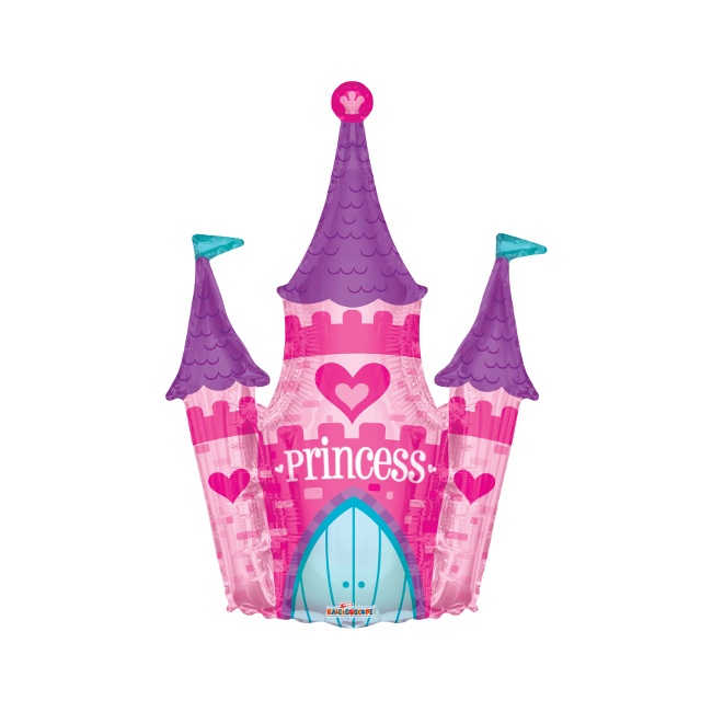 Fantastischer Ballon mit der Silhouette eines Prinzessinnenschlosses, ideal zur Verschönerung von Geburtstagen und Partys, die mit Disney- oder Märchenprinzessinnen zu tun haben.