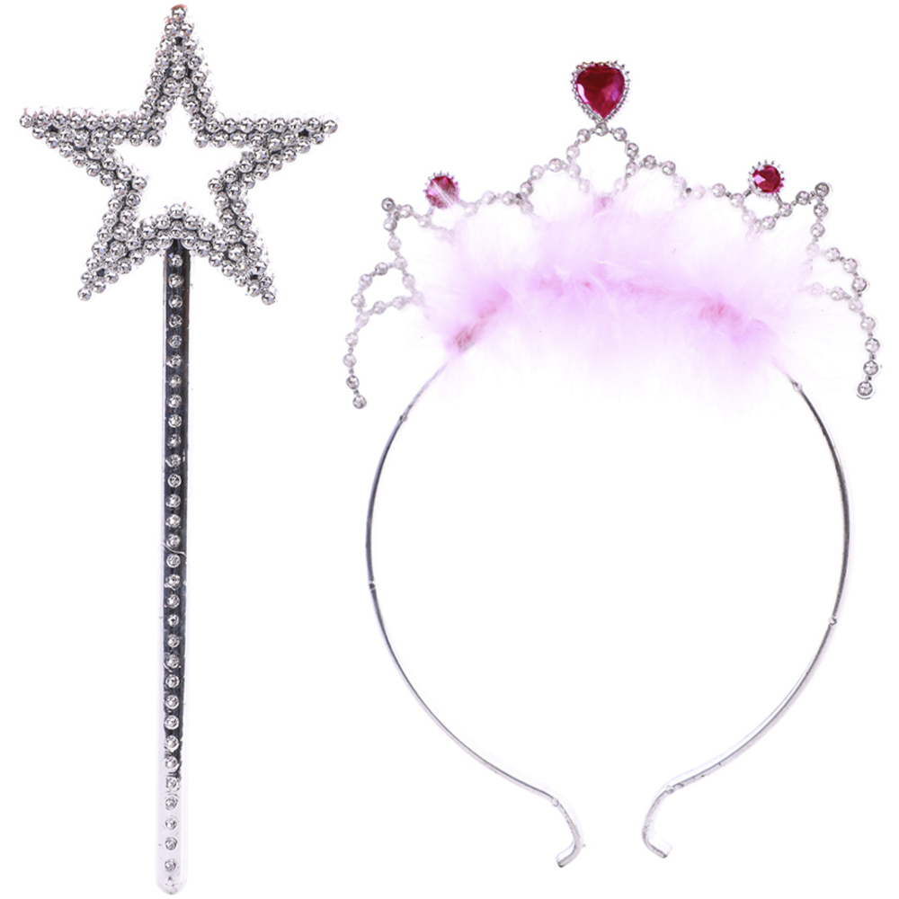 - Enthält: Zauberstab und Tiara mit rosa Federn und funkelndem Strassbesatz.