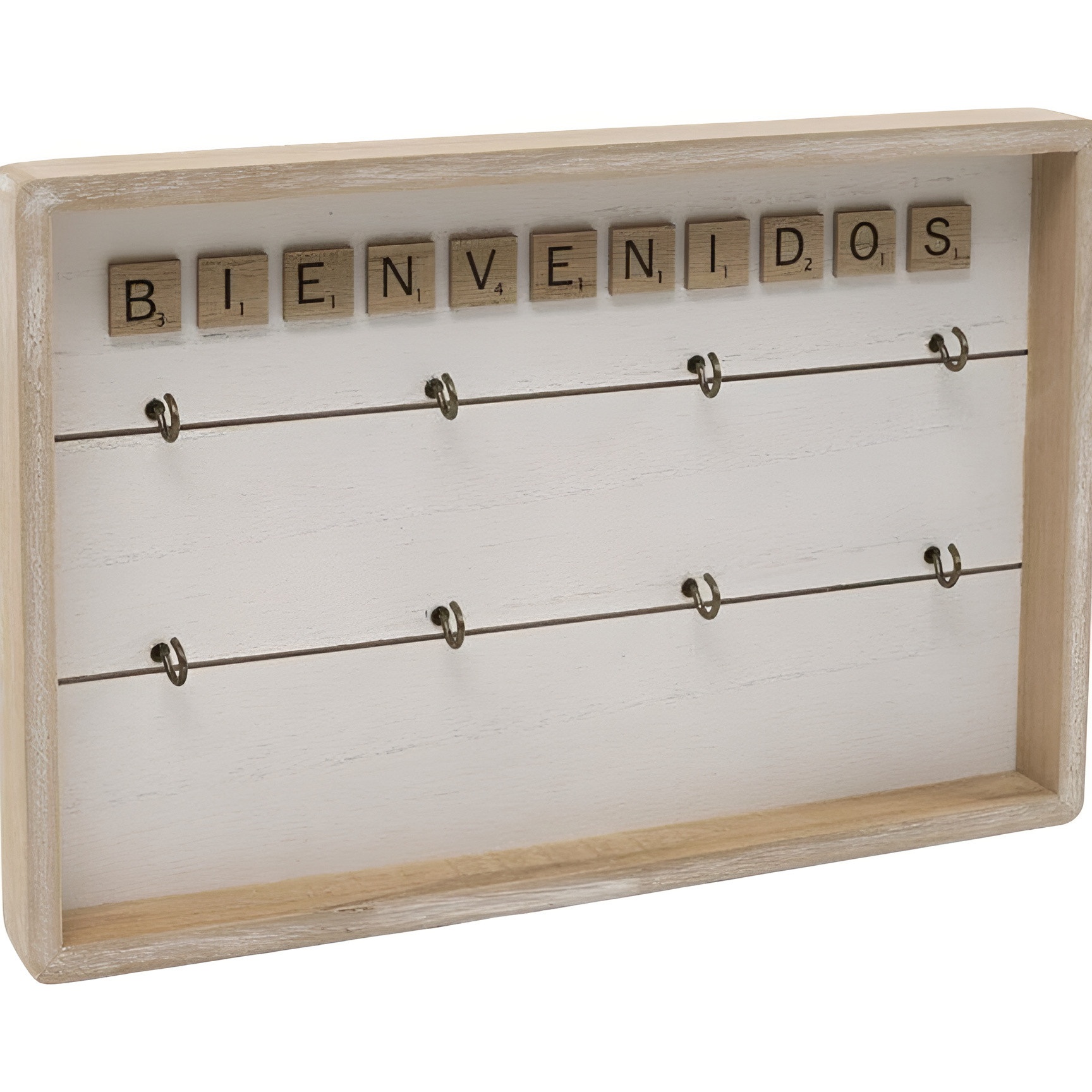 Rechteckiges Schlüsselbrett mit Schriftzug "Bienvenidos" und Haken - Dcasa