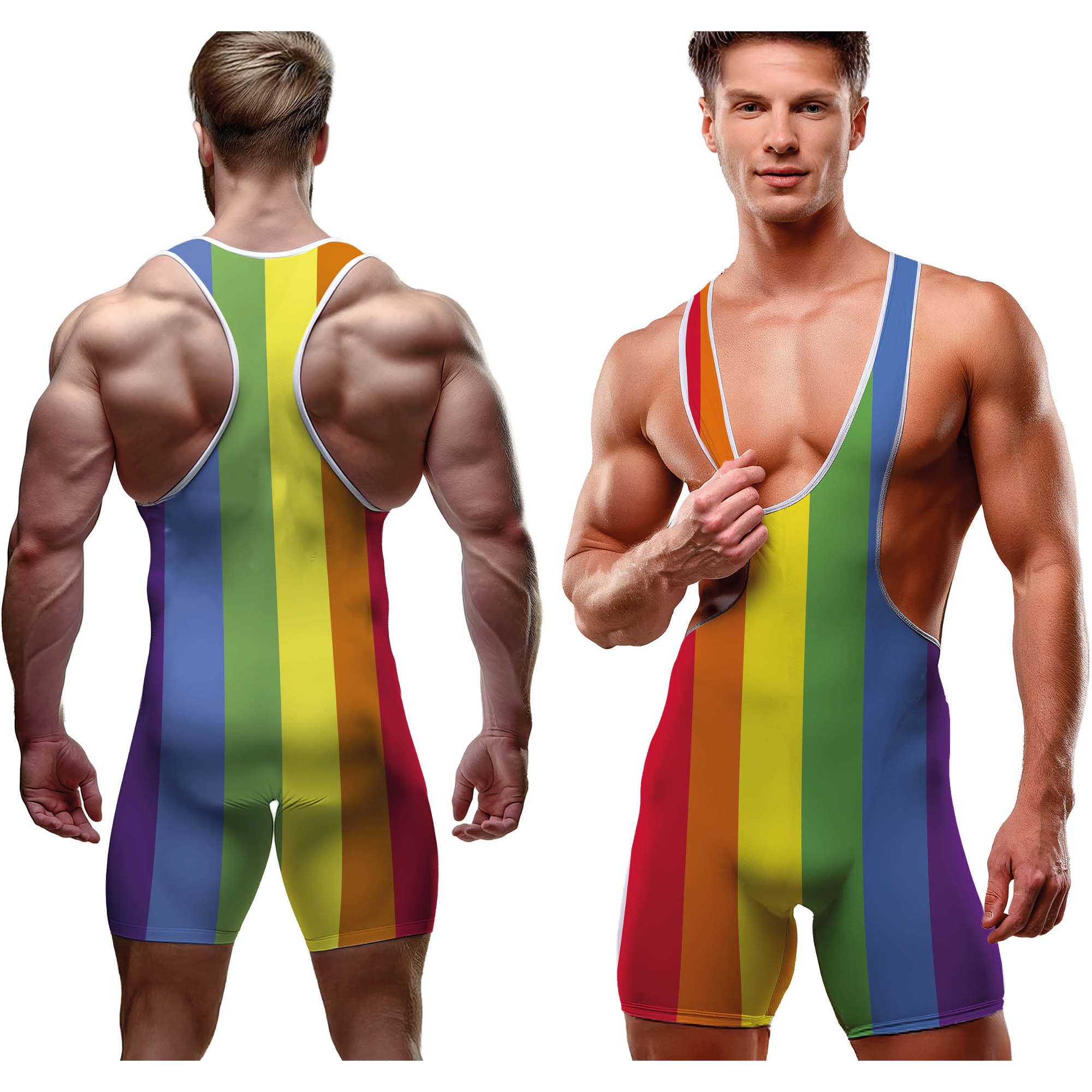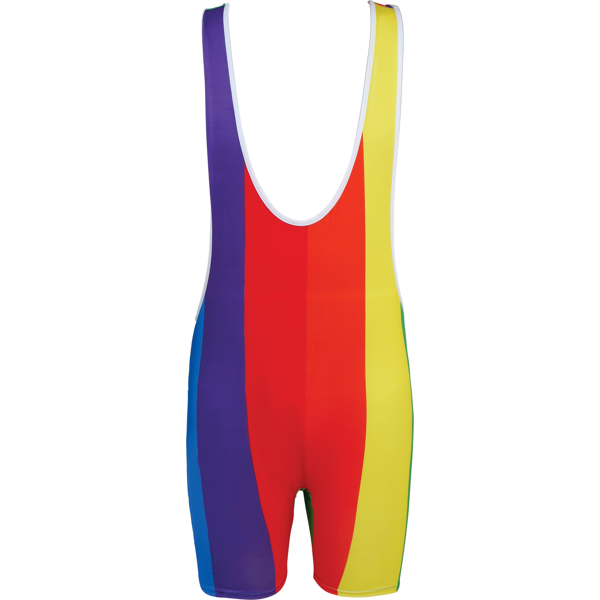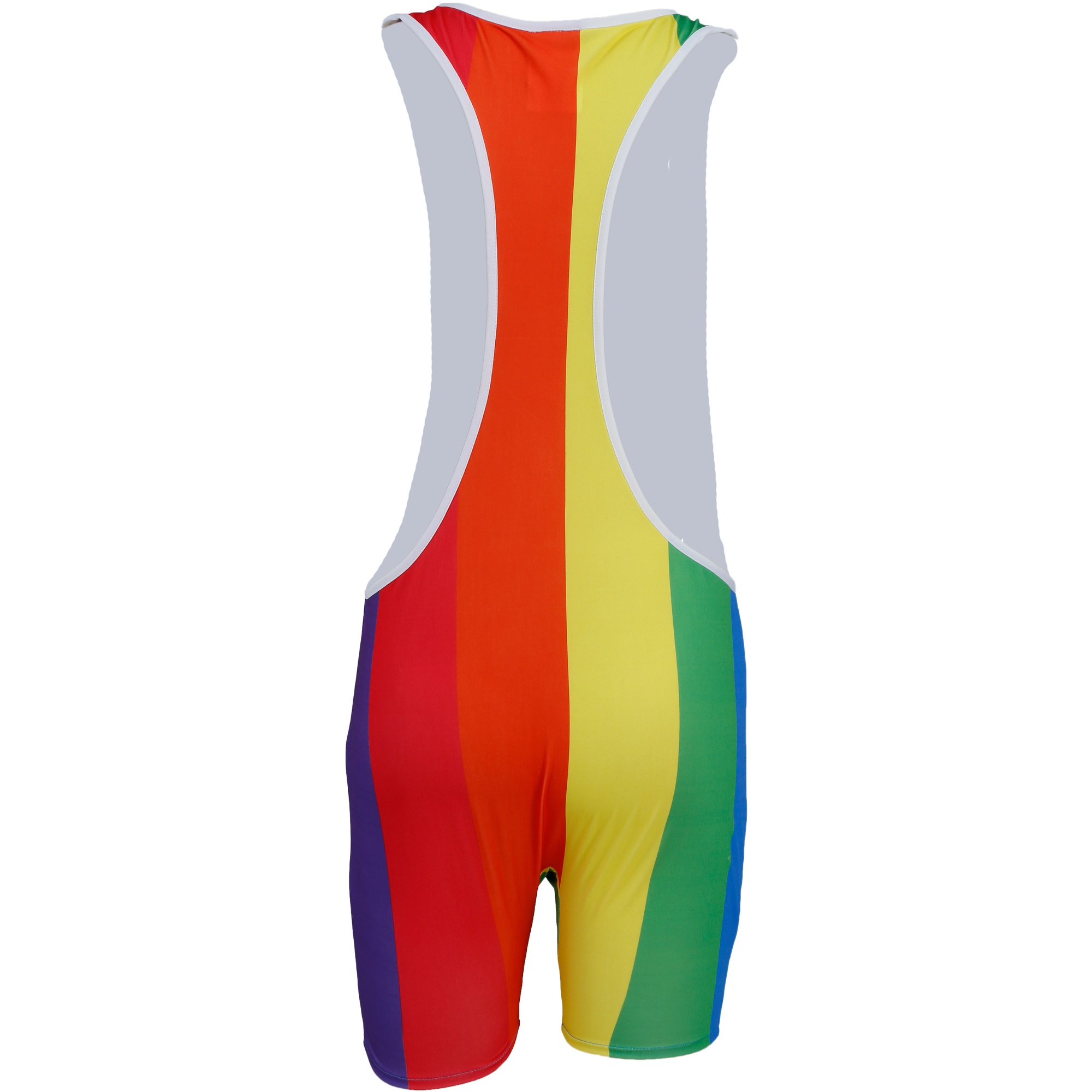 Ein einteiliger Anzug mit vertikalen Regenbogenstreifen, um den LGBT?Pride sichtbar zu zeigen. Der figurbetonte Singlet-Schnitt betont Ihre Figur und verfügt über einen Racerback mit breiten Trägern. Hergestellt aus elastischem, leichtem Polyester für Komfort und maximale Bewegungsfreiheit - perfekt, wenn Sie sich auf Feiern farbenfroh und auffällig präsentieren möchten.