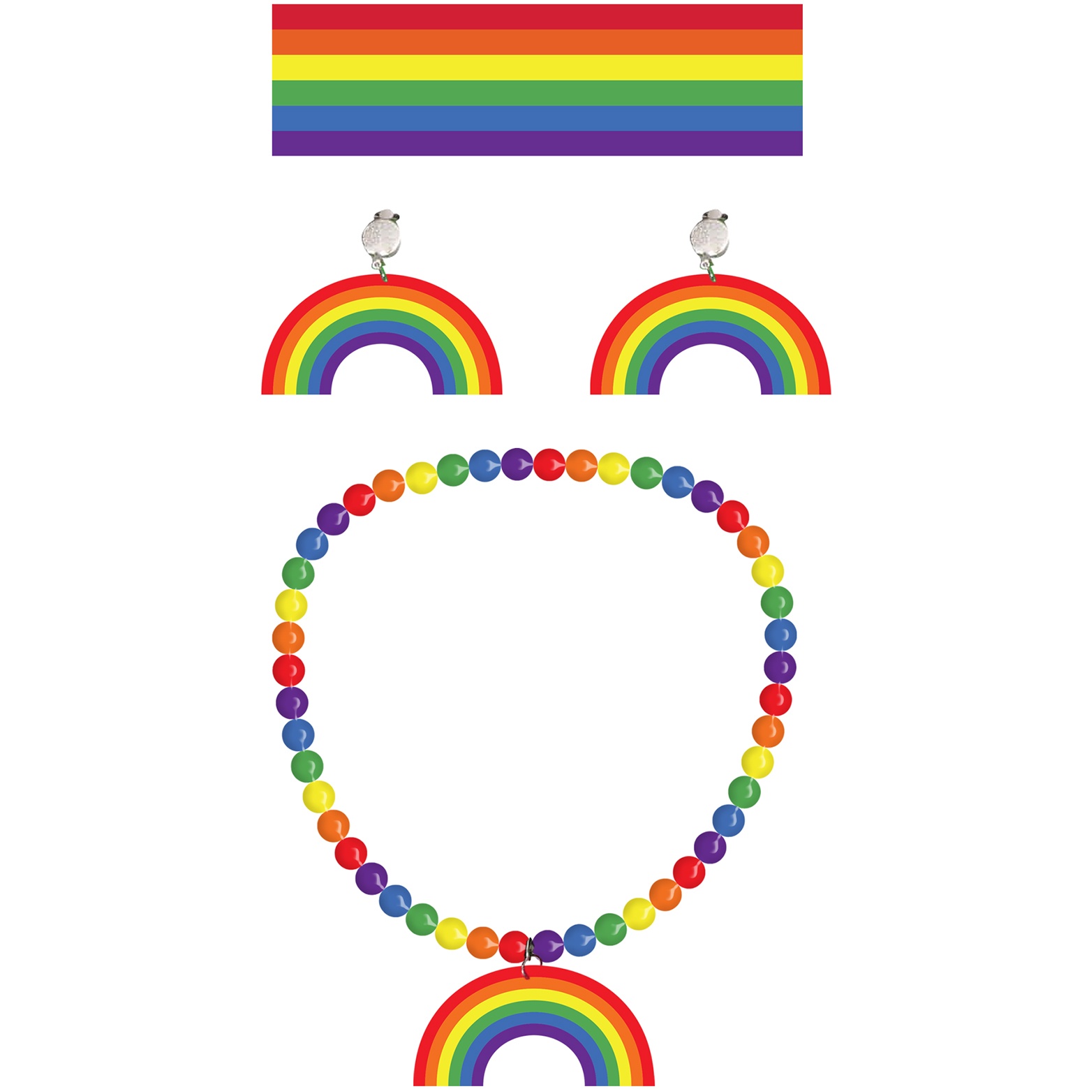 Regenbogen-Set mit Halskette, Ohrringen und Haarband