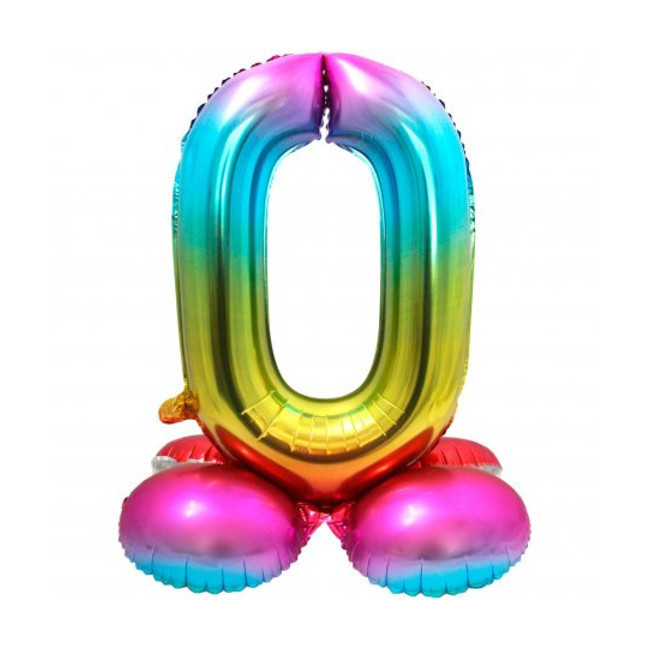 Regenbogen Zahlenballon mit Boden 72 cm - Folat - 1 Stück