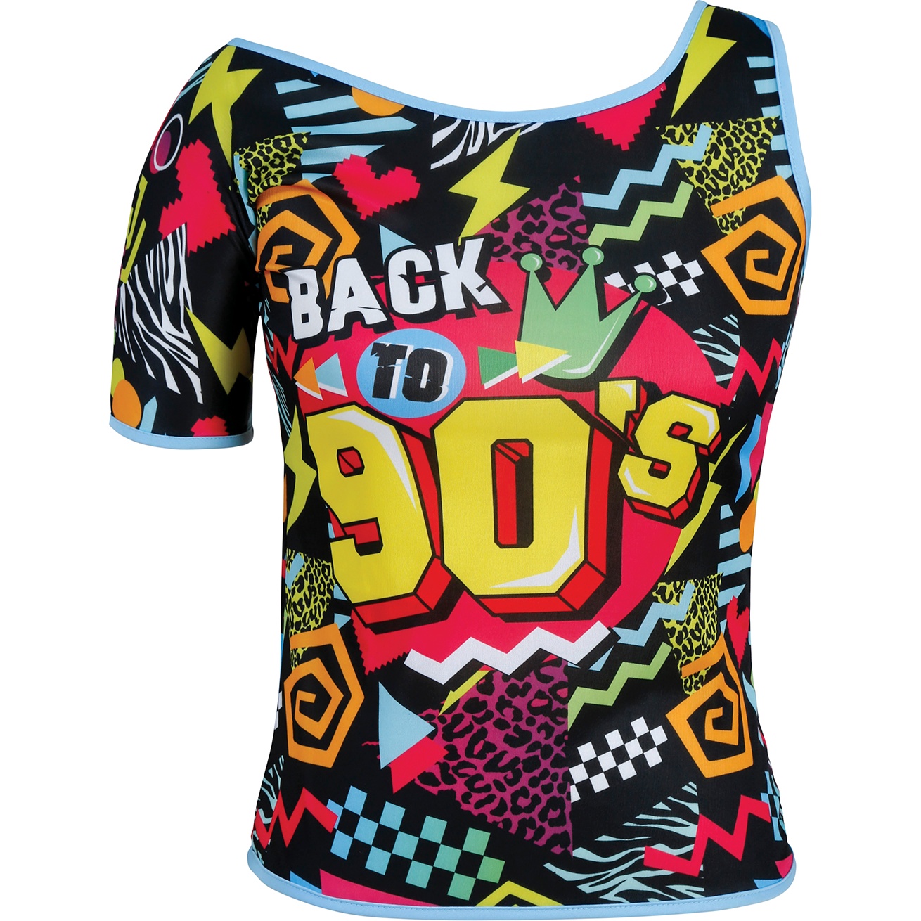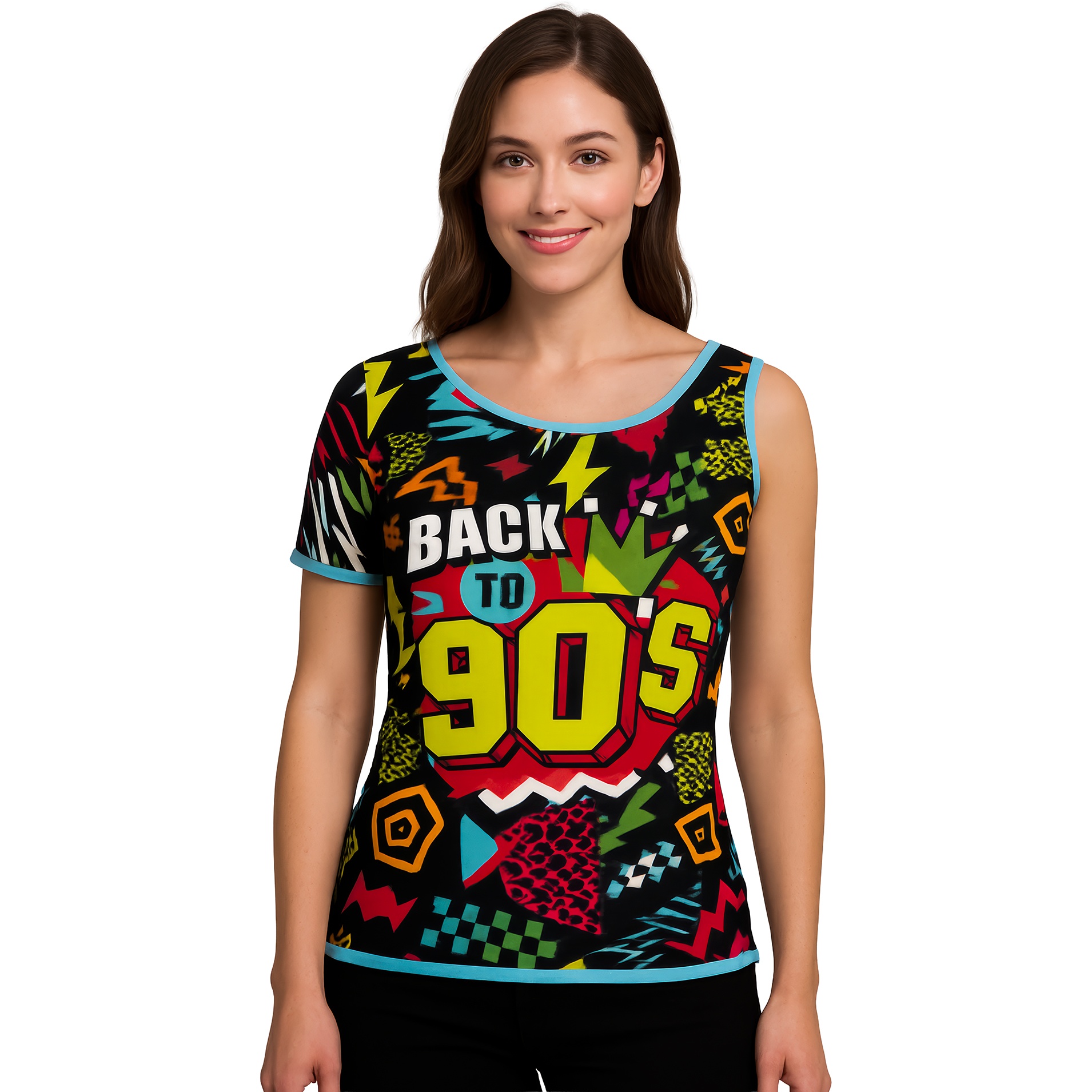 Erleben Sie die Energie der 90er neu mit diesem neonfarbenen Retro-T-Shirt. Der lebendige Print mit geometrischen Motiven und retrohaften Grafiken fängt die Pop-Ästhetik und die Nostalgie des Jahrzehnts ein. Der bequeme Schnitt und das leichte Polyestergewebe sorgen dafür, dass Sie es den ganzen Abend über stilvoll tragen können. Ein auffälliges, vielseitiges Teil, das Sie mit Retro-Accessoires kombinieren und so im Handumdrehen einen Vintage-Look kreieren können.