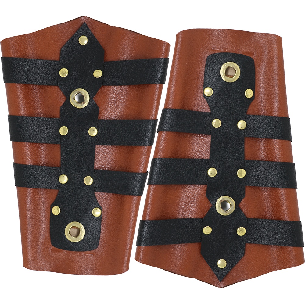 Ergänzen Sie Ihr Legionärs- oder Gladiatoren-Outfit mit diesen authentisch wirkenden römischen Armschienen. Sie verfügen über eine lederähnliche Oberfläche mit goldfarbenen Nieten für einen starken visuellen Auftritt; Riemen und Rückverschluss sorgen für einen bequemen und sicheren Sitz. Ideal für Karneval, Themenpartys und LARP-Szenarien, in denen Details den Unterschied machen. Leicht und flexibel - perfekt für Umzüge und Veranstaltungen.