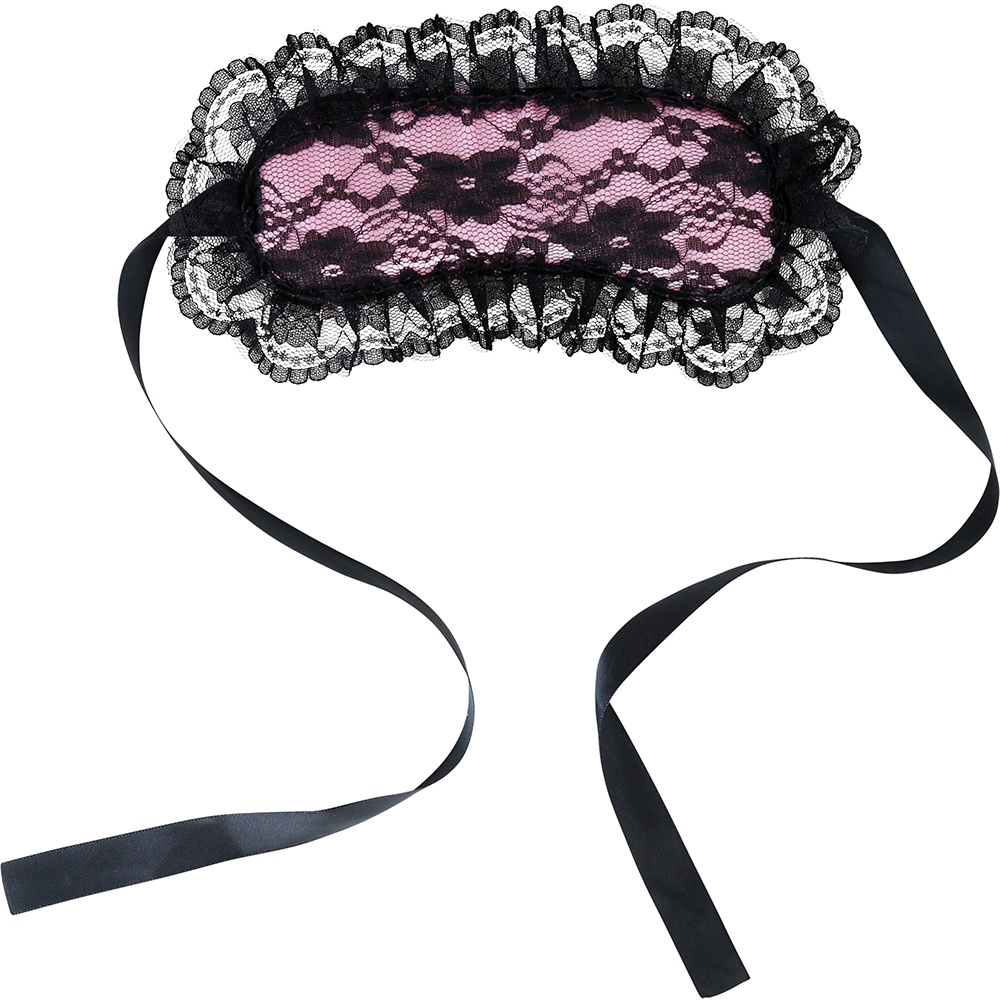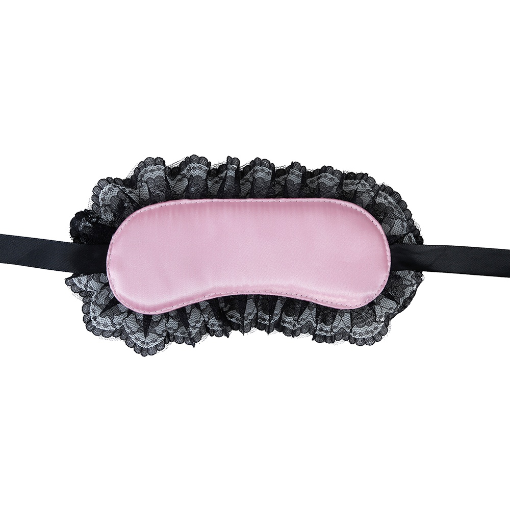 Sinnliche rosa Augenmaske mit eleganter schwarzer Spitze, die den Blick betont und Ihren intimen Momenten eine verführerische Note verleiht.