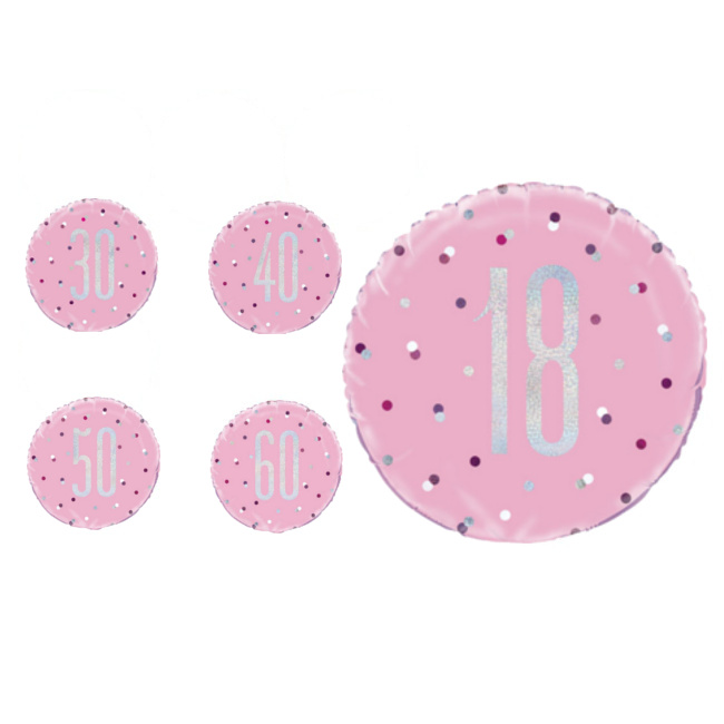 Hübscher rosafarbener Ballon mit Kreisen in verschiedenen Farbtönen, in der Mitte ist die Zahl in Silber aufgedruckt, sieht auf jeder Geburtstagsparty toll aus.