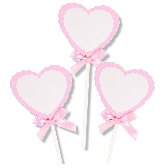 Rosa Herz-Tortenaufleger mit Schleife - 3 Stück