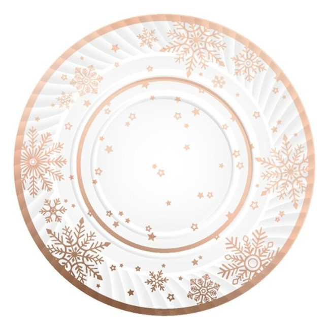 Runde Papierplatte von 30 cm in Roségold mit Schneemuster - 1 Stück