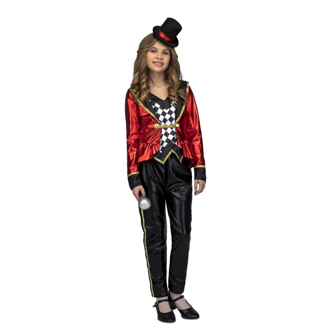 Rot-schwarzes Zirkusdompteurskostüm für Mädchen.