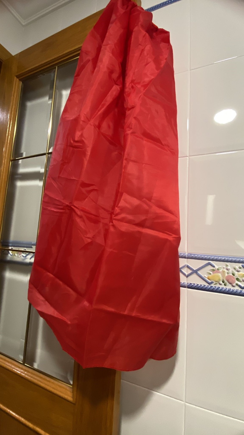 Me gustó mucho la capa, la tela es finita, pero me gustó. El cierre del cuello que es de velcro y viene fenomenal, agarra muy bien. Es larga y cubre hasta los pies, también rodea prácticamente todo el cuerpo y cuando mi hij@ vio la cara alucino. ¡Era un súper héroe! El envío ha sido súper rápido y el paquete perfecto. Gracias.