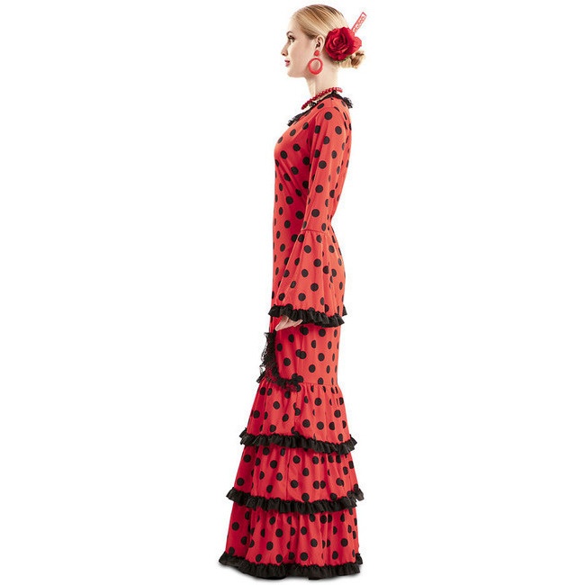 Rotes Sevillana Kostüm mit schwarzen Tupfen für Frauen