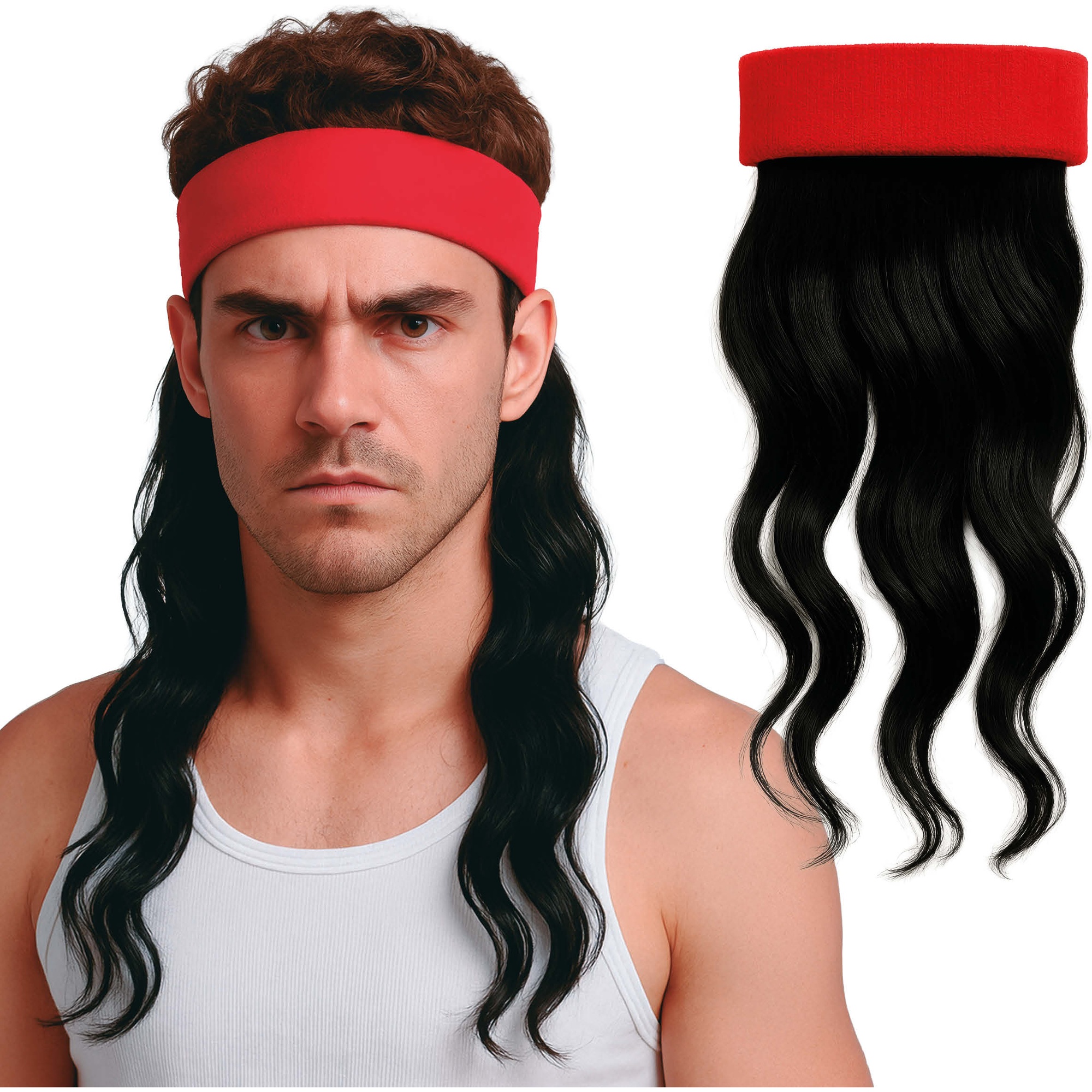 Rotes Stirnband mit Rambo-Strähnen