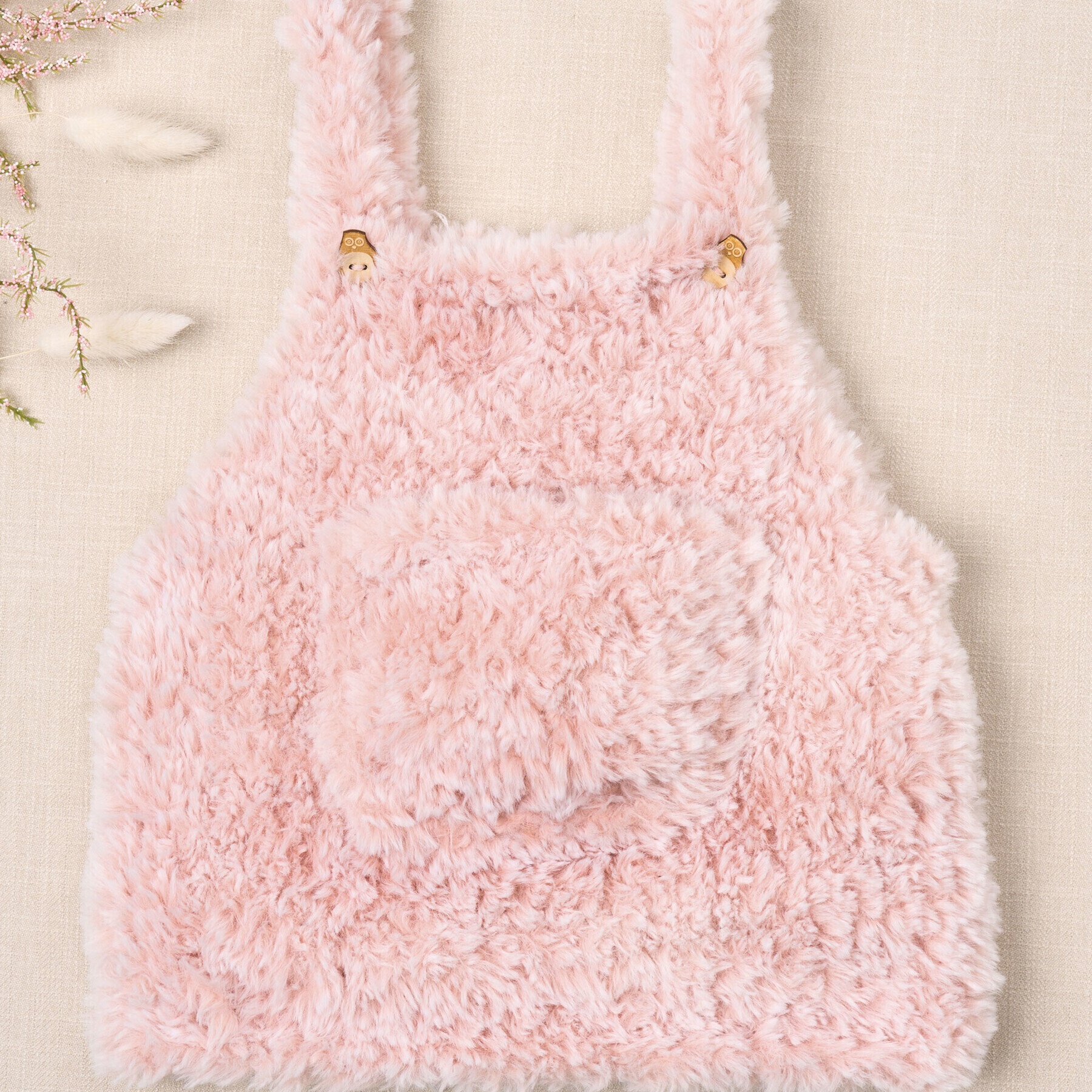 Mantener fuera del alcance de los niños para evitar riesgo de asfixia con el material de lana.