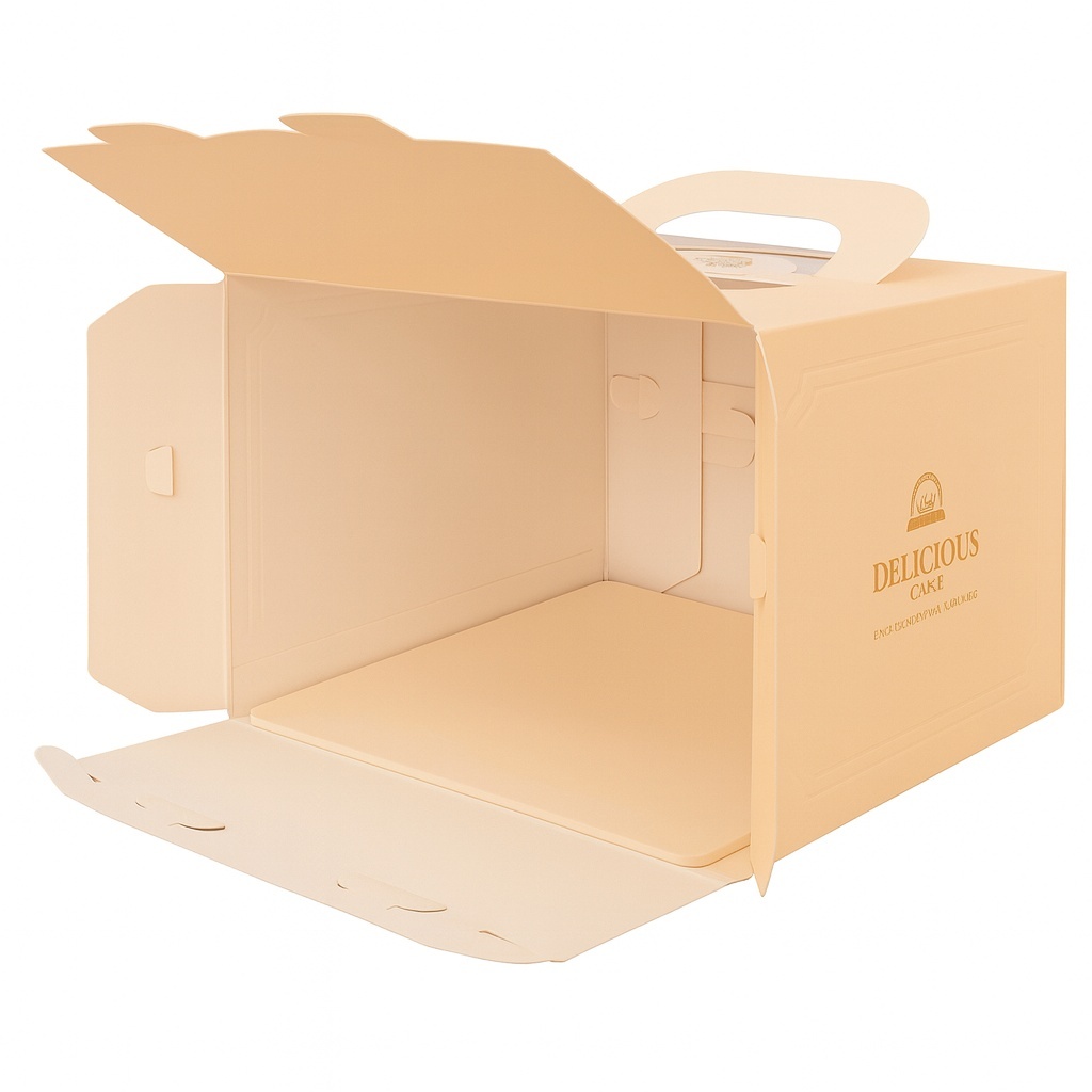 Elegante Kuchenbox aus festem Karton, ideal zum Transportieren und Präsentieren von Torten, Kuchen und anderen Backwaren.
