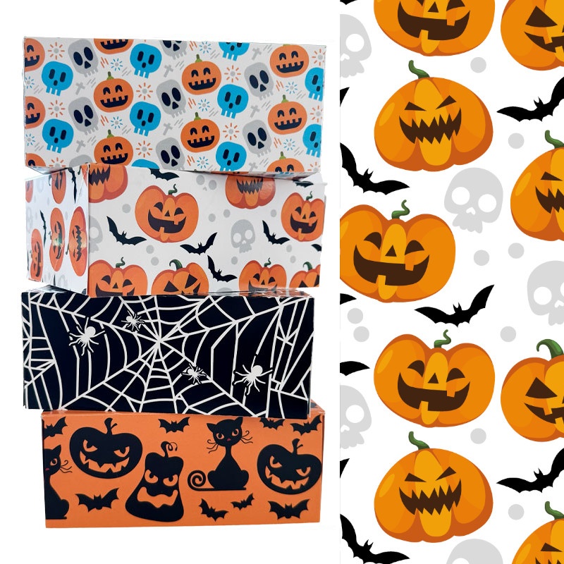 Schachtel für Süßigkeiten mit Kürbissen und Fledermäusen - 18 x 13,5 x 7,5 cm - Decora - 1 Stück