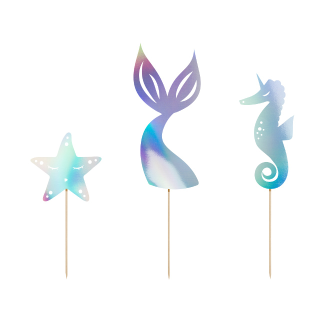 Schillernde Meerjungfrau Tortenaufleger - 3 Stück