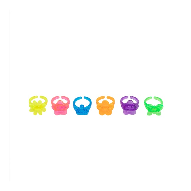 Originelle, sortierte Ringe in Form von Schmetterlingen und Blumen, ideal zum Teilen auf der Geburtstagsfeier.