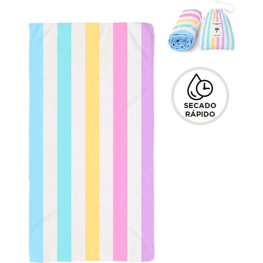 Schnelltrocknendes Handtuch mit gestreiftem Pastell-Design, das dem Strand- oder Bademoment eine fröhliche, zeitgemäße Optik verleiht.