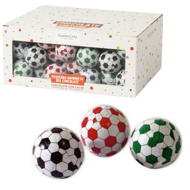 Leckere Schokoladenkugeln mit einer Verpackung, die einem Fußball ähnelt, um Kinder und Erwachsene zu überraschen.