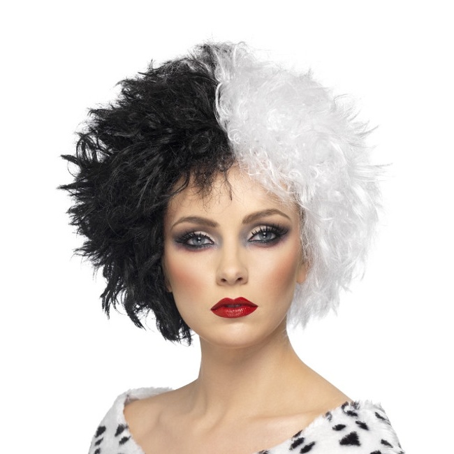 Diese Perücke ist von der bösen Figur aus dem Film inspiriert. Die kurze Form, die Frisur und die halb schwarze und halb weiße Farbe sind perfekt, um Ihr Kostüm zu vervollständigen.