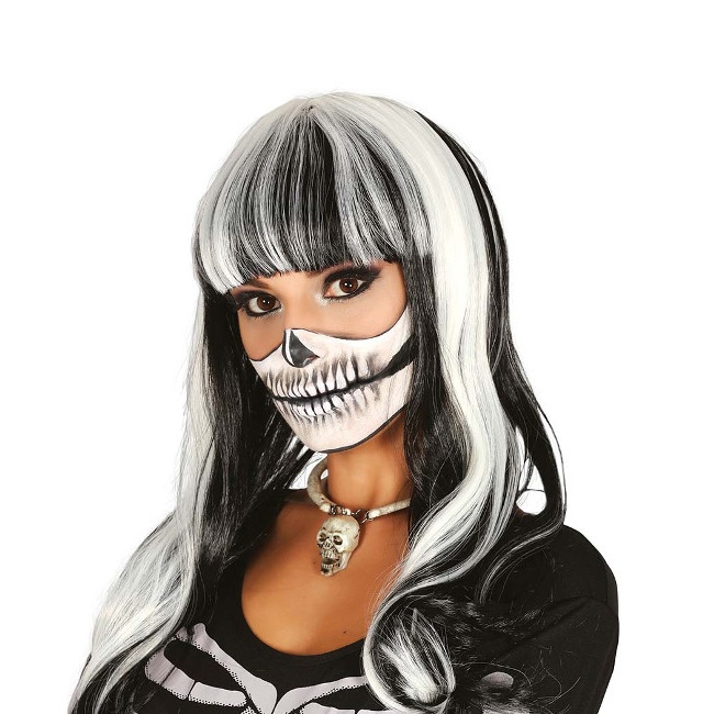 Eine lange Perücke mit sehr gruselig aussehenden Fransen, perfekt für ein Skelett- oder Vampirkostüm.