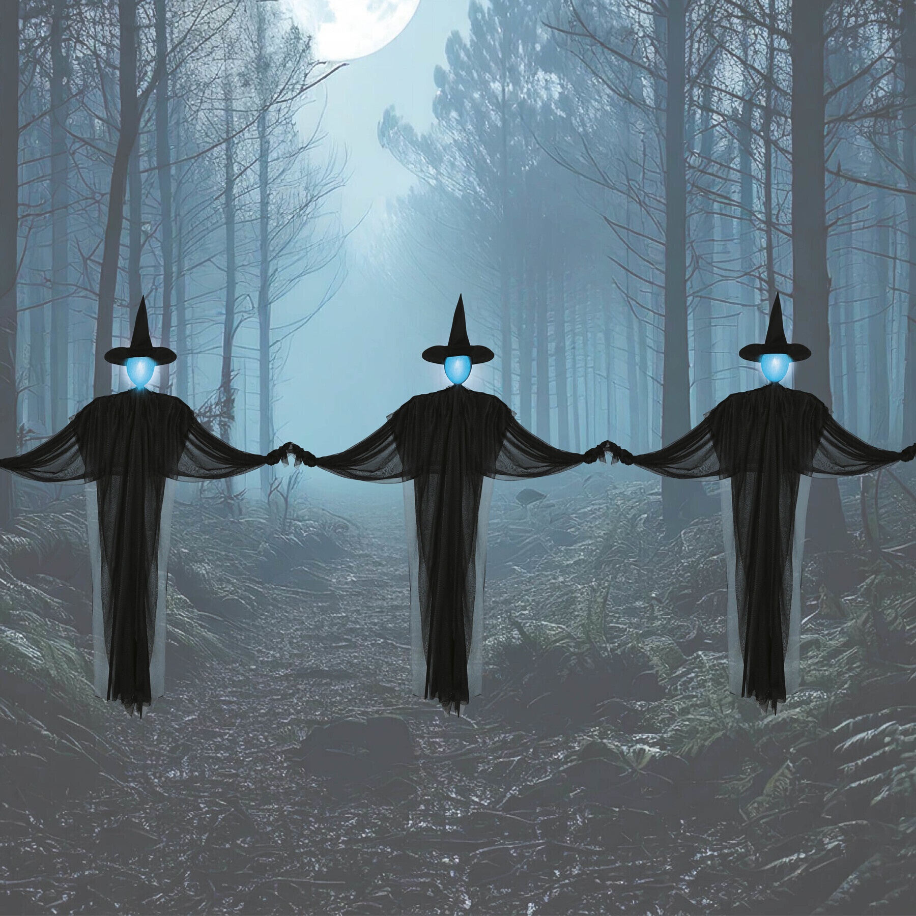 Schwarze Hexen mit Beleuchtung, 1,60 m groß