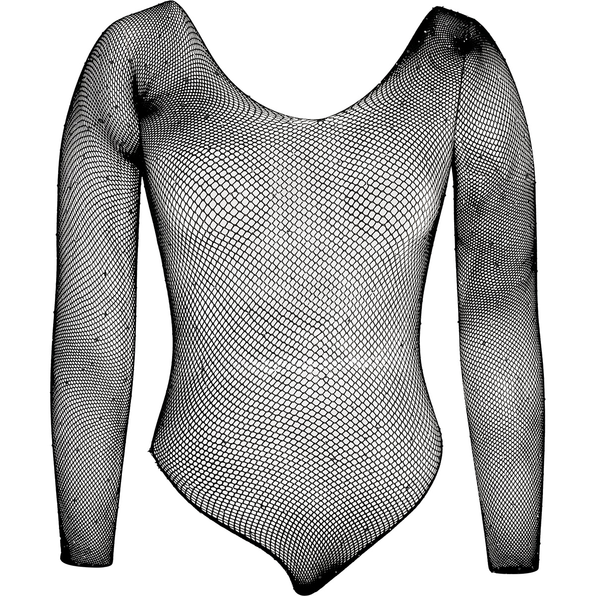 Schwarzer Mesh-Body mit funkelnden Strassapplikationen - entwickelt für Abendlooks und Club-Atmosphäre. Der figurbetonte Schnitt und die langen Ärmel erzeugen eine elegante, sinnliche Silhouette; die kontrollierte Transparenz setzt Ihr Outfit wirkungsvoll in Szene. Perfekt kombinierbar mit Bralette, Jeans, Rock oder Shorts, um mutige, moderne Styles zu kreieren. Aus Elastan und Polyamid gefertigt für eine bequeme, flexible Passform, die sich Ihrem Körper anpasst.