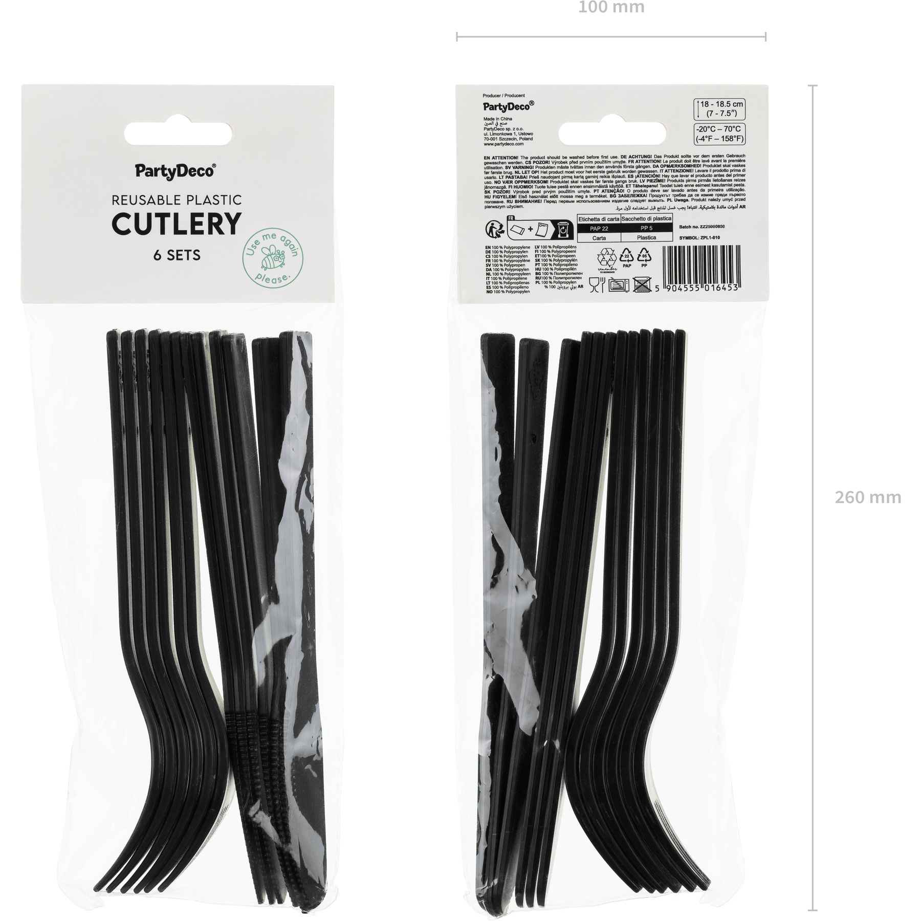 Schwarzes Besteck aus Kunststoff, 18 cm - 12 Stück