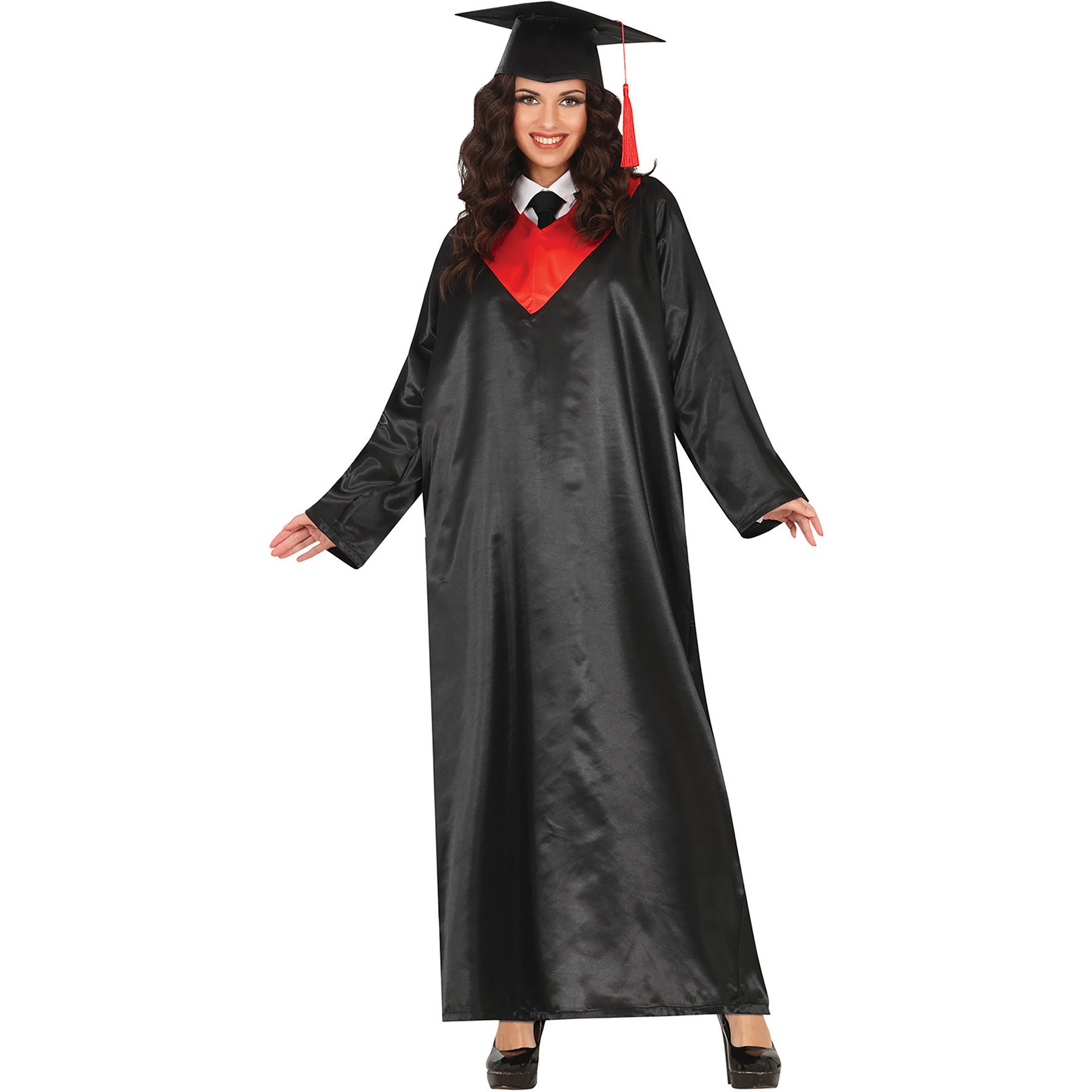 Schwarzes und rotes Absolventenkostüm für Erwachsene