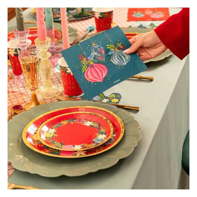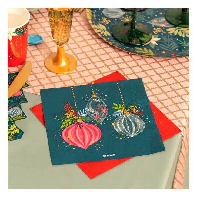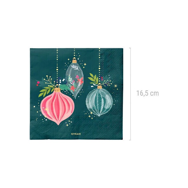 Servietten mit weihnachtlichem Grünschmuck, 16,5 cm - 30 Stück