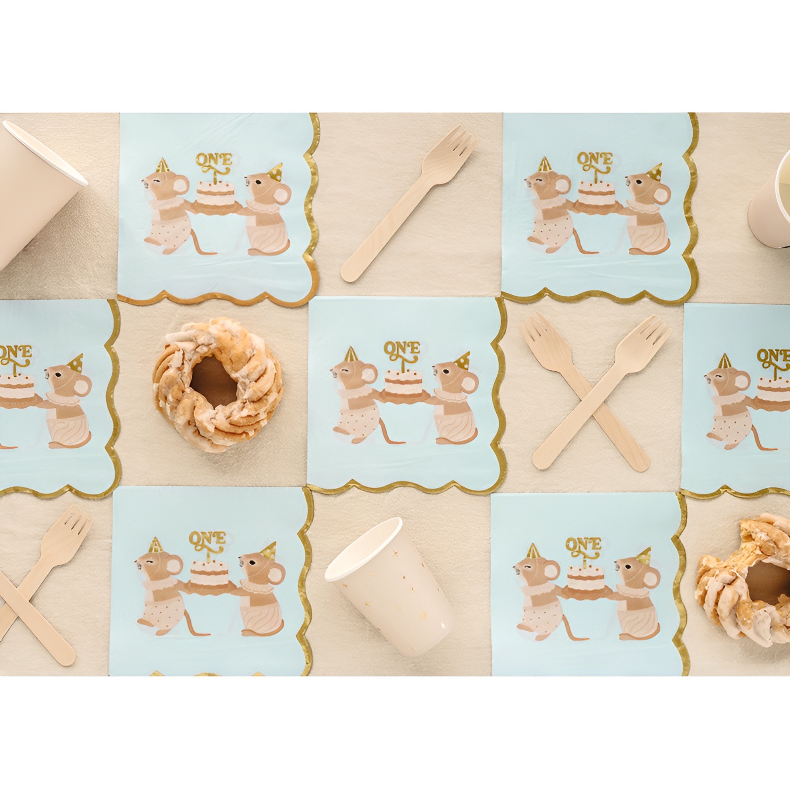 - Kindlicher Charme: Illustration mit Mäuschen und dem Schriftzug "ONE" - ideal, um Ihren Tisch zum ersten Geburtstag stilvoll zu gestalten.