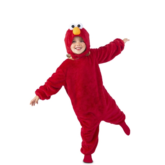 Das offizielle Kostüm besteht aus einer roten Mütze, die oben mit dem Gesicht von Elmo verziert ist (die Augen und die Nase sind innen flauschig), und der Stoff ist weich und dick, genau wie der dazugehörige Ganzkörperanzug.