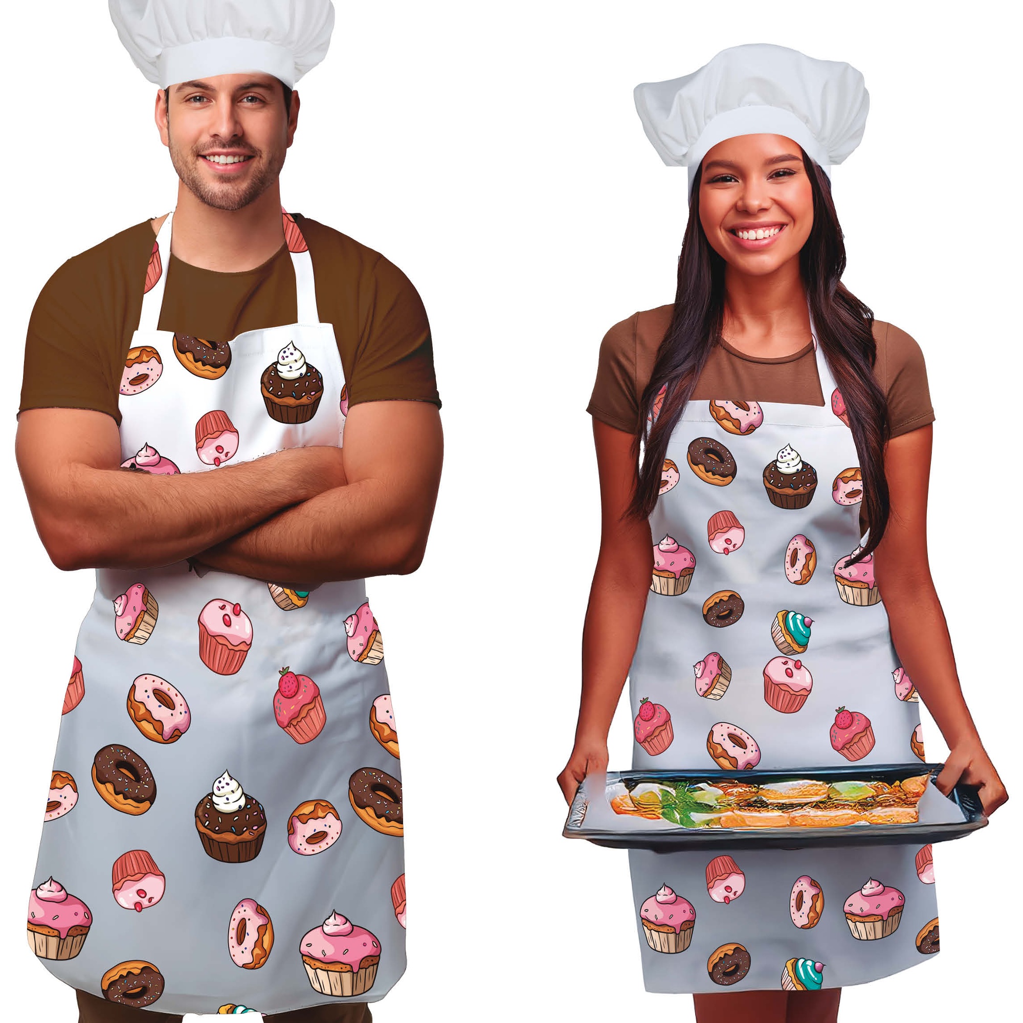 Set aus Schürze und Kochmütze "Cupcakes" für Erwachsene