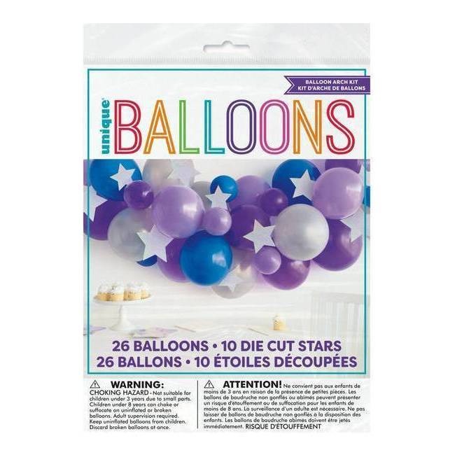 Lila sortierte Ballongirlande mit Sternen - 36 Stück.