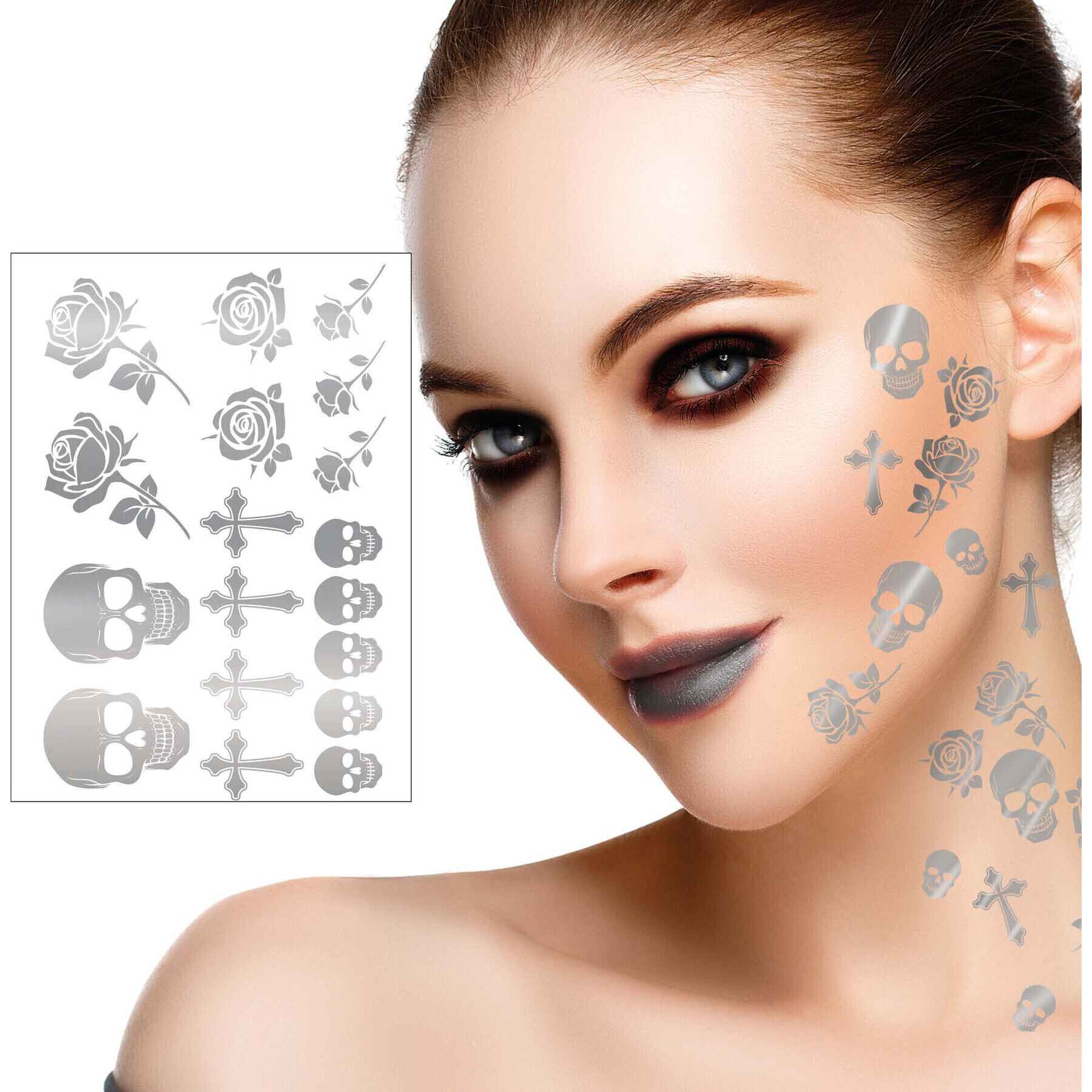 Silberne Totenköpfe Temporäre Tattoos