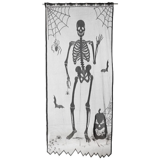 Skelett Türdekoration aus schwarzer Spitze, 2,10 x 1,00 m