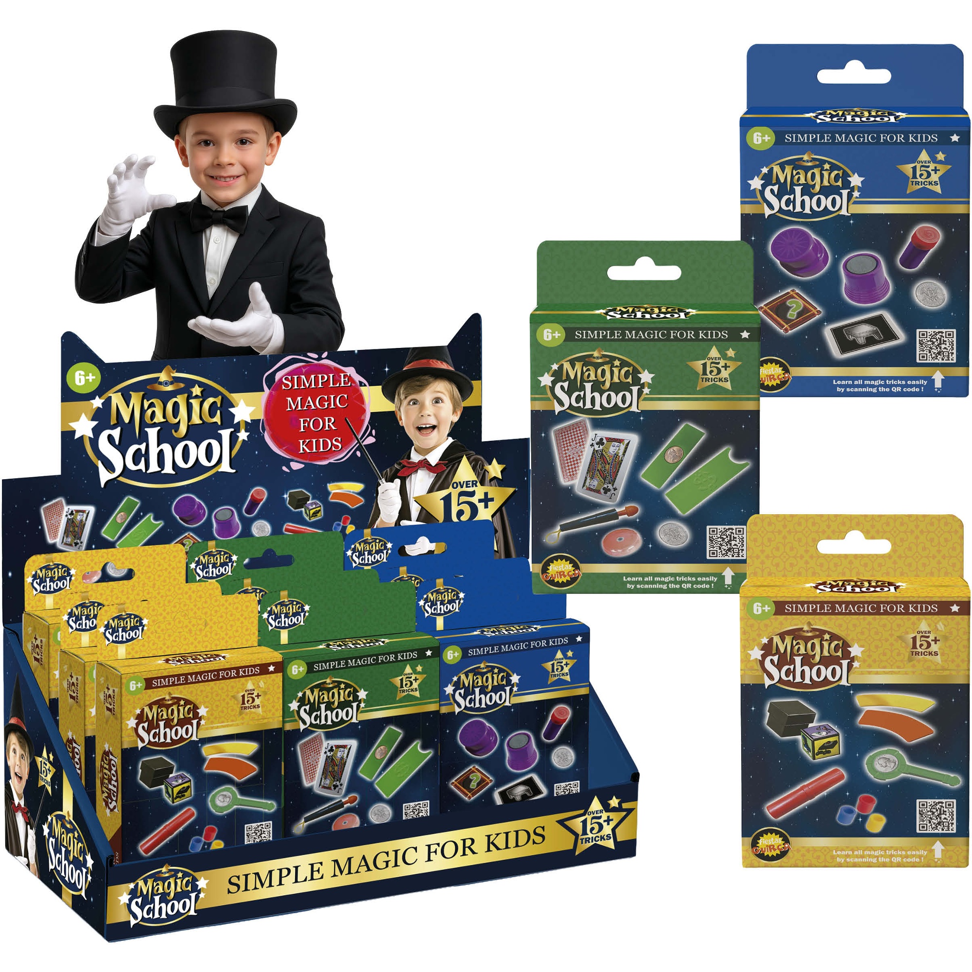 Set mit 12 Zaubertricks speziell für Kinder. Leicht zu erlernende Tricks, mit denen die Kleinen schnell unterhaltsame Vorführungen für Treffen und Geburtstage vorbereiten können. Robuste, handgerechte PVC-Teile für kleine Hände. Entwickelt, um Kreativität, Koordination und Bühnenvertrauen zu fördern. Attraktive Einzel-Blisterverpackung - ideal als Geschenk oder für Gruppenaktivitäten. Wenn Sie ein originelles Geschenk suchen, ist dieses Set eine ausgezeichnete Wahl.