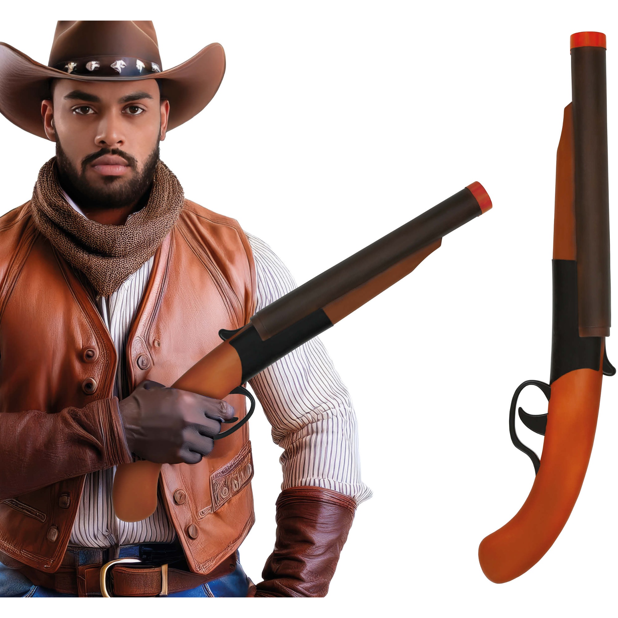 Spielzeug-Schrotflinte zur Ergänzung von Western-Kostümen und Partydekorationen. Sie verfügt über einen Rückstoß-Effekt, der realistische Optik vermittelt, ohne mit gefährlichen Teilen zu arbeiten. Das leichte PVC sorgt für komfortable Handhabung bei Feiern, Umzügen und Fotosessions. Perfekt für Karneval, Photocalls und Motto-Partys, wenn Sie ein auffälliges und sicheres Accessoire suchen.